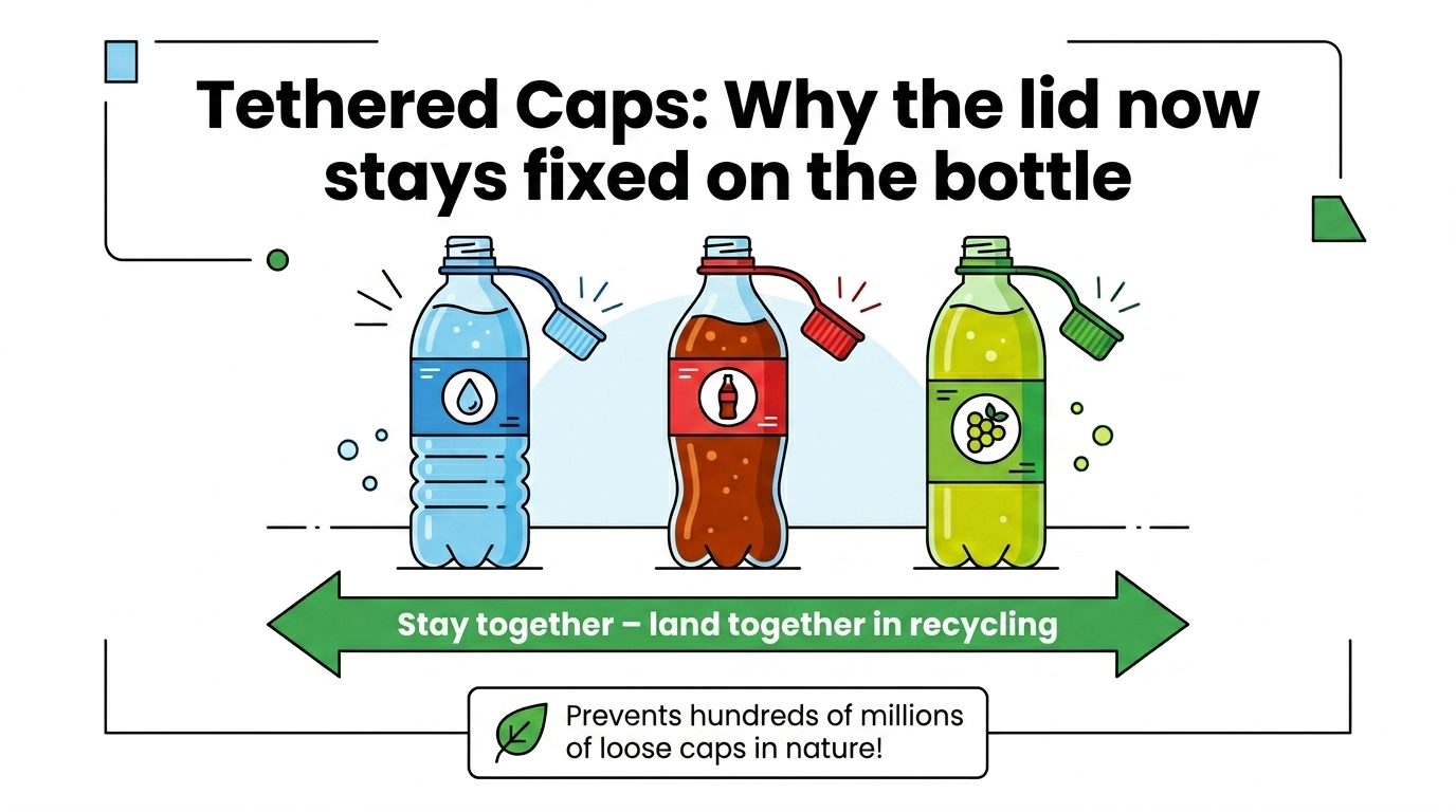 Tethered Caps: Why the lid now stays attached to the bottle ♻️